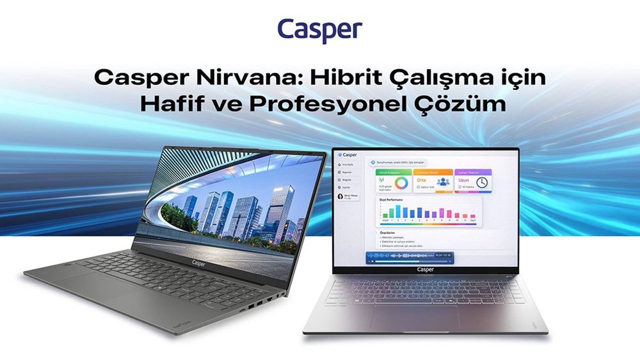Casper, Nirvana laptop serisiyle hibrit çalışma ve mobil yaşamın ihtiyaçlarına yanıt verdiğini duyurdu. Açıklamada, seride yer alan modellerin yaklaşık 1,6 kilogram ağırlık ve 19 milimetre inceliğindeki tasarımlarıyla gün boyu kolay taşınabilirlik sunduğu belirtildi.